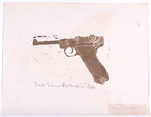 | See Details (update) | DSF0546 (view large size) | Lugar | 1981 | 4 inches high 6 inches wide | Lino Cut | Luger Edition 2/10 | Kevin Rosier |