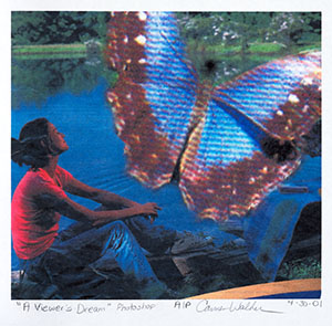 | See Details (update) | DSF1019 (view large size) | A Viewer%27s Dream | 4/30/2001 | 6.5 inches high 7 inches wide | Photoshop | Lady sitting looking at large Butterfly | Carmen Walker |